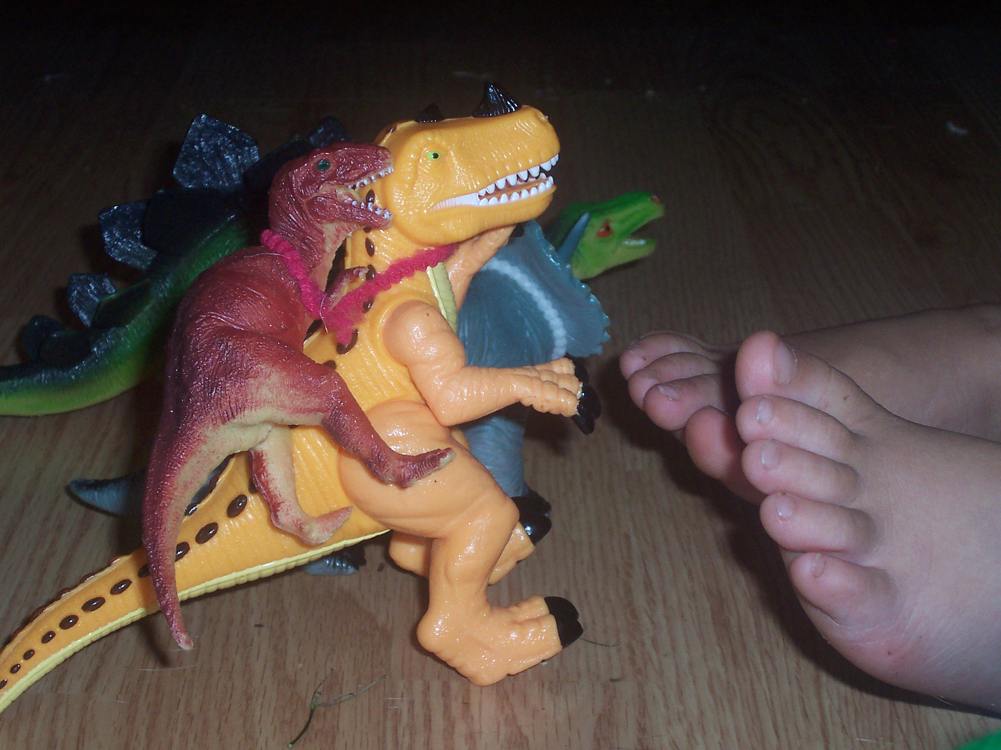 Scott and I found this herd while we were making breakfast this morning.  Norah rigged up her headbands as slings so that the daddy and mama could carry their baby dinosaurs.  Real Sharptooths wear babies!