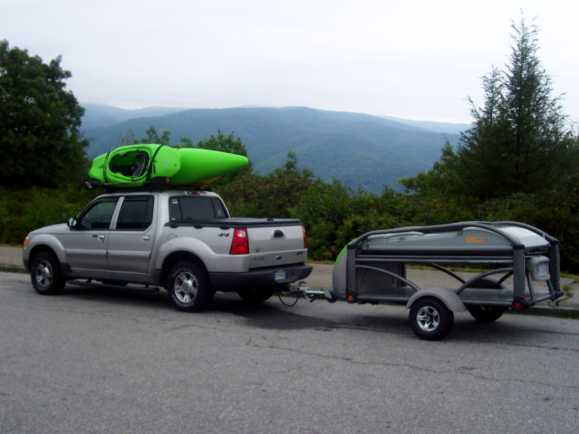 A few weekends ago, Scott got to borrow a SylvanSport GO.  Our brilliant engineer friend, Tom Dempsey, designed this incredible trailer/camper hybrid.  We’d seen his design but to feast our eyes on the finished product–Oh My!  Scott took it to the NOC/Dagger Freestyle Shootout and it certainly drew a crowd.