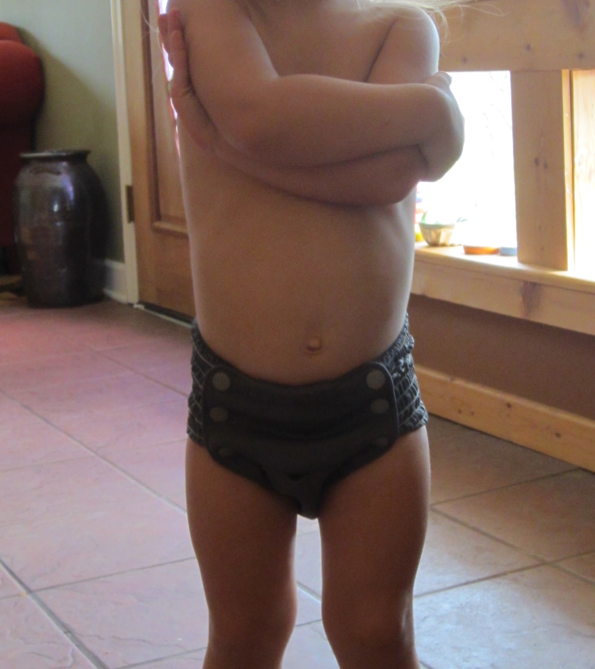 Bummi’s: This one did not get points on cute factor. It was huge and bubbled out around Cedar’s trim bum. There was no way this thing was going under pants. It would have to be for skirts and dresses. I bought a medium. Maybe a small would have been trimmer but I’m not sure the elastic would have been comfortable. This diaper takes forever to dry. I liked the flannel lining that would let her feel wetness quickly. Leaks were contained. I still use it–at night of all times–with an extra liner. I got it on sale and so, for the cost, it is fine as a nighttime diaper.