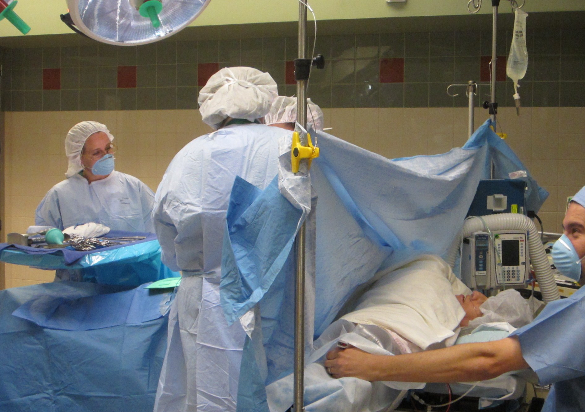 Now we’re in the operating room. Notice mom’s arms are not strapped down.