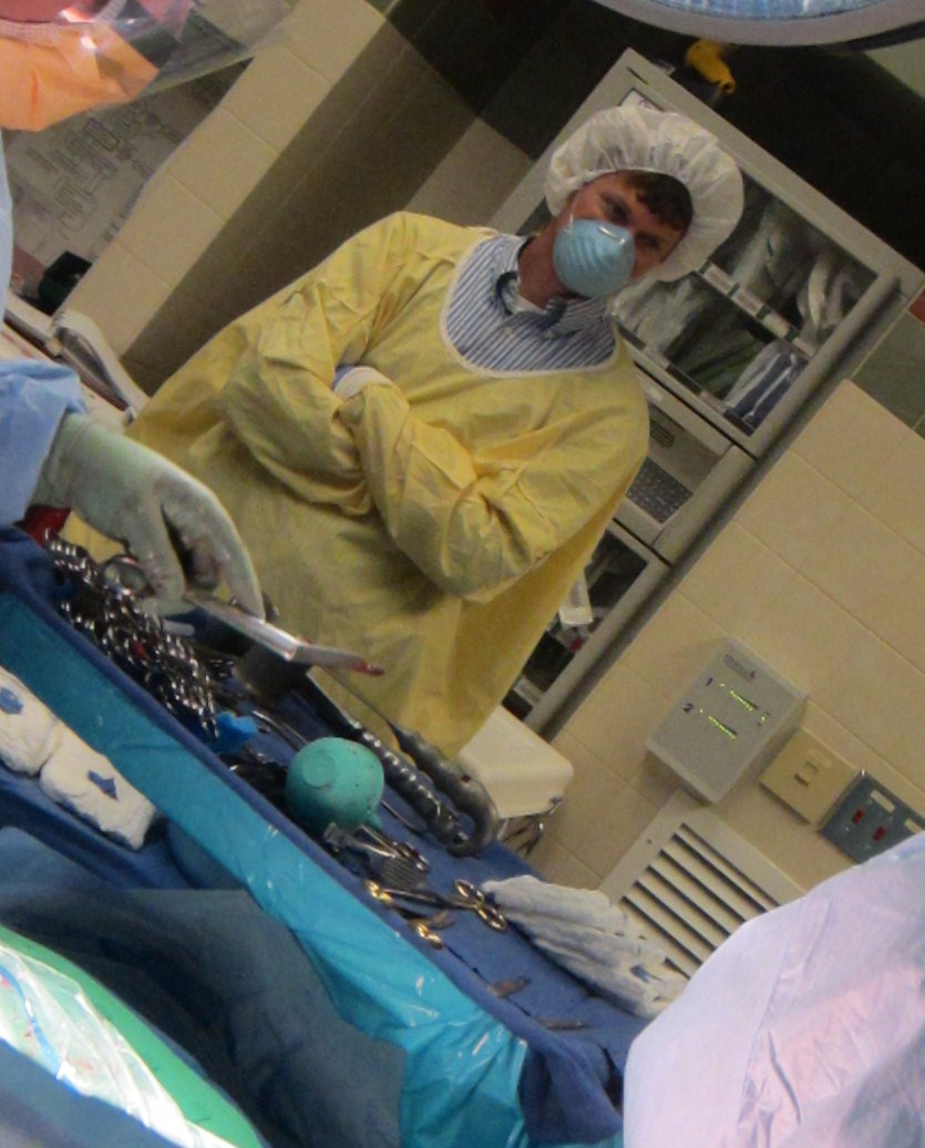 Top reason I prefer Greer? Doulas can enter the sacred operating room. And I dig the nurse’s scrubs instead of the paper ones. In this picture, I’m waiting with dad. The mom goes back first and there is about a 30 minute wait while she receives her spinal anesthesia and her stats are monitored. Dad was nervous even though it wasn’t his first rodeo so we talked about our kids while we waited.