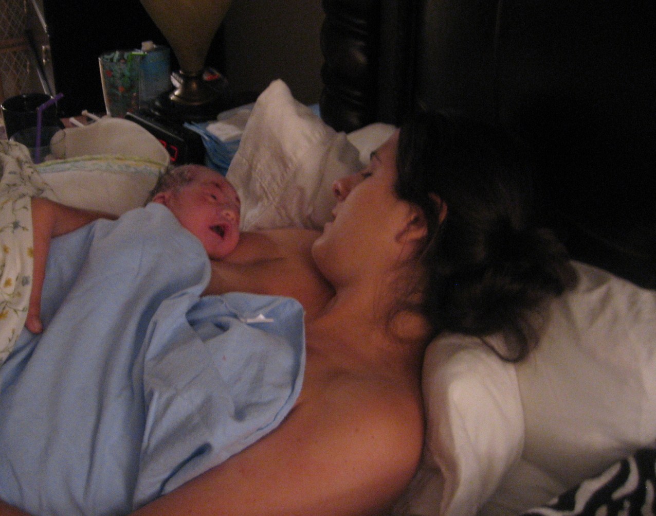 I had had the urge to push a little right before Julie arrived.  Now the urge was uncontrollable.  Crain’s birth took over my body and of course my body knew just what to do.  I remember feeling like I was just watching myself birth.  You go to this whole entire different realm, or at least I did.  It one of those experiences in life where you are not the driver, but the passenger and you let your body drive and have faith that it knows what to do.
