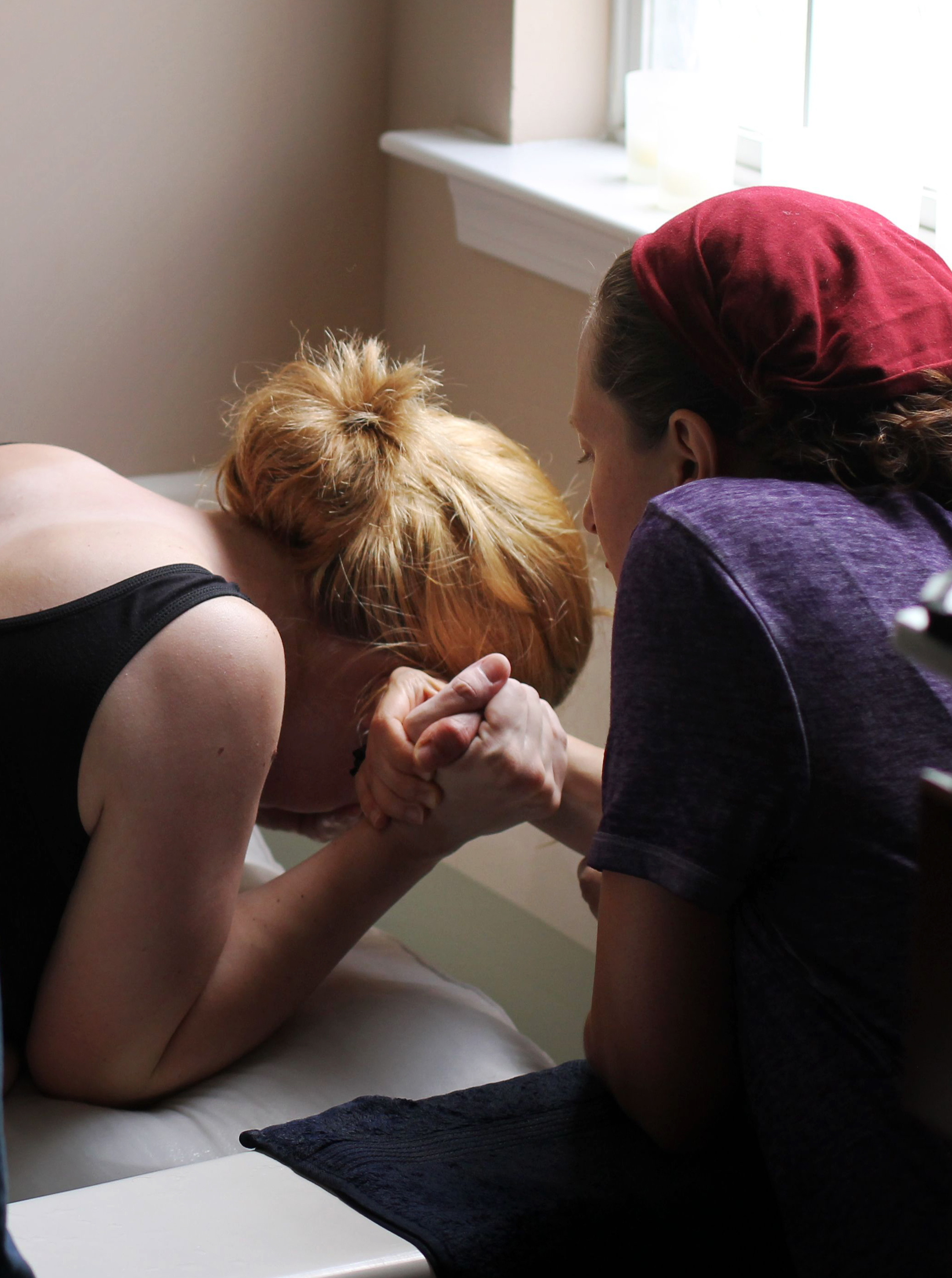 Julie stayed near my head and held my hand and put a peppermint cloth on my forehead. At one point, she and Daniel were in opposite places, and she massaged my back with arnica oil. (Also amazing.)
