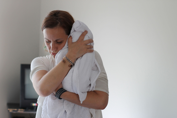 I was still on my hands and knees, and Daniel was proclaiming, “Our son! Our son!” and crying tears of happiness and relief. (Once again, this moment was not an emotional one for me, but I was relieved and exhausted.) Meanwhile, I said something like, “I’m never doing that again!” something I’ve never said before. Still elated, Daniel, on the other hand, said something like “Birth is so fun! It’s just so amazing!” To which I replied, jokingly, “What did you just say?” (Within 24 hours, though, I no longer felt the “I’m never doing that again” repulsion to childbirth. Soft, sleepy babies have a way of remedying such soured sentiments. )