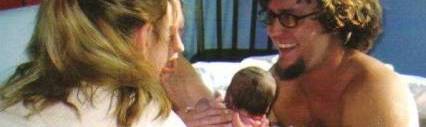 Norah’s eyes were wide open and she turned her head to look straight at me.  It was such an amazing moment.  The sun was streaming in and she was so alert.  So beautiful!  I nursed her a few minutes later.  Scott cut the cord.  30 minutes later, I delivered the placenta.  Then Scott held Norah while I got out (much lighter) and got cleaned up.  Amy finished taking care of me and then left us to sleep.  I woke up around 8pm and went home at 9pm.  It felt strange to just leave with a baby.  I felt like I should sign some papers or something!  (And in case you are wondering:  I labored 26 hours after my membranes ruptured; 32 hours from the start of contractions–I would have had a fight at the hospital).