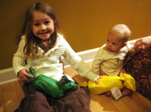 Babywearing:  Hoorah for wearing babies!  Cedar loves being worn.  So far, the Maya ring sling and the Moby wrap have been her favorites.  I didn’t expect to use the ring sling much since I prefer wraps.  I would have gotten a prettier sling.  I’m disappointed that she doesn’t like the My BabyNest.  But that is why I have so many products–she might like it next week…