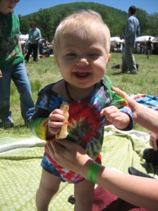 Here is Cedar sporting Hippie’s threads (why yes, she is enjoying her first taste of Barley’s pizza):