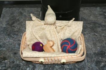 Birthday Ring – inspired by rings from Germany, contains 12 hand tailored figures on a beeswax sealed wood base; customarily, child chooses one each year to stand in the center and the spot on the ring is filled with a candle; at 12 years old the ring is fully alight with all figures in the middle. Not recommended for everyday play. – $85, set includes 12 figures, wood base.