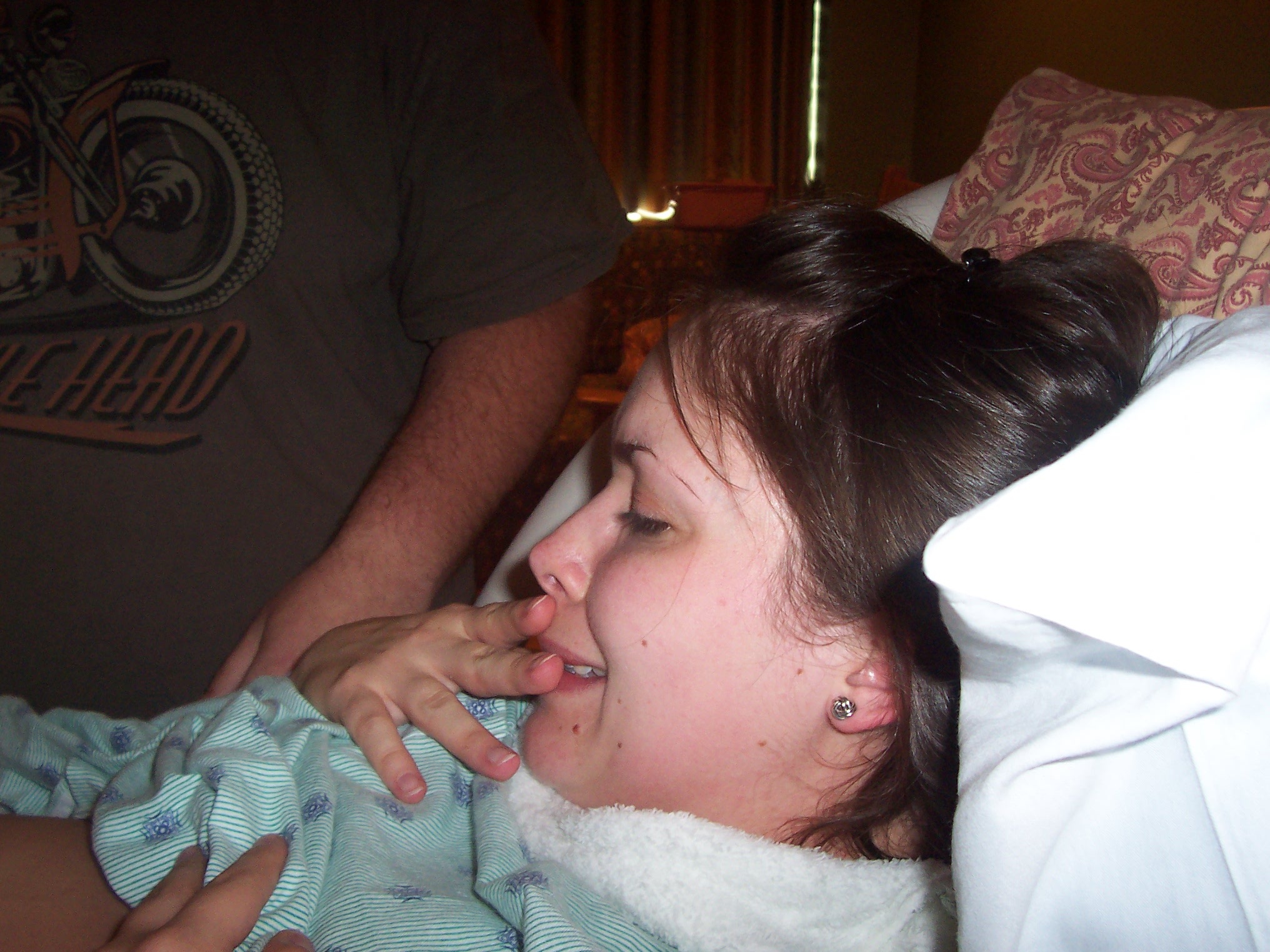 img_7407Labor was starting to get very challenging and I just kept pacing and had not gotten my rhythm down to get through my contractions. My personality is so independent and I think I can do everything myself but I realized that I needed Tyler and I needed to allow him to help me through these contractions. I finally got into a ritual during my contractions. I leaned on Tyler and held his hands over my face and rocked back and forth. Strange, but it seemed to work. My contractions were getting so intense; we decided to head to the hospital. I have to admit in the back of my head I was thinking that natural childbirth was for the birds and I was wondering what I was thinking doing it naturally! The car ride was interesting, my contractions seemed to be back to back and Tyler was driving like a race car driver to get me there. I think he was a little nervous about birthing a baby in the car. I remember not wanting to hear any noises, it was like I was so deep into myself that everything around me was a big blur.