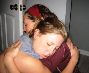 Yes, this moment. Do you know what I was thinking? I was remembering the time I left her in my uncle’s hayloft. She was little and refused to come down the ladder. So my cousins and I left her crying. My horrible brain fired off many of those memories in rapid succession leaving me a pile of mush. I wept in her shoulder so she wouldn’t see. I was entirely unprepared for the onslaught memories. I never cried at my own births.